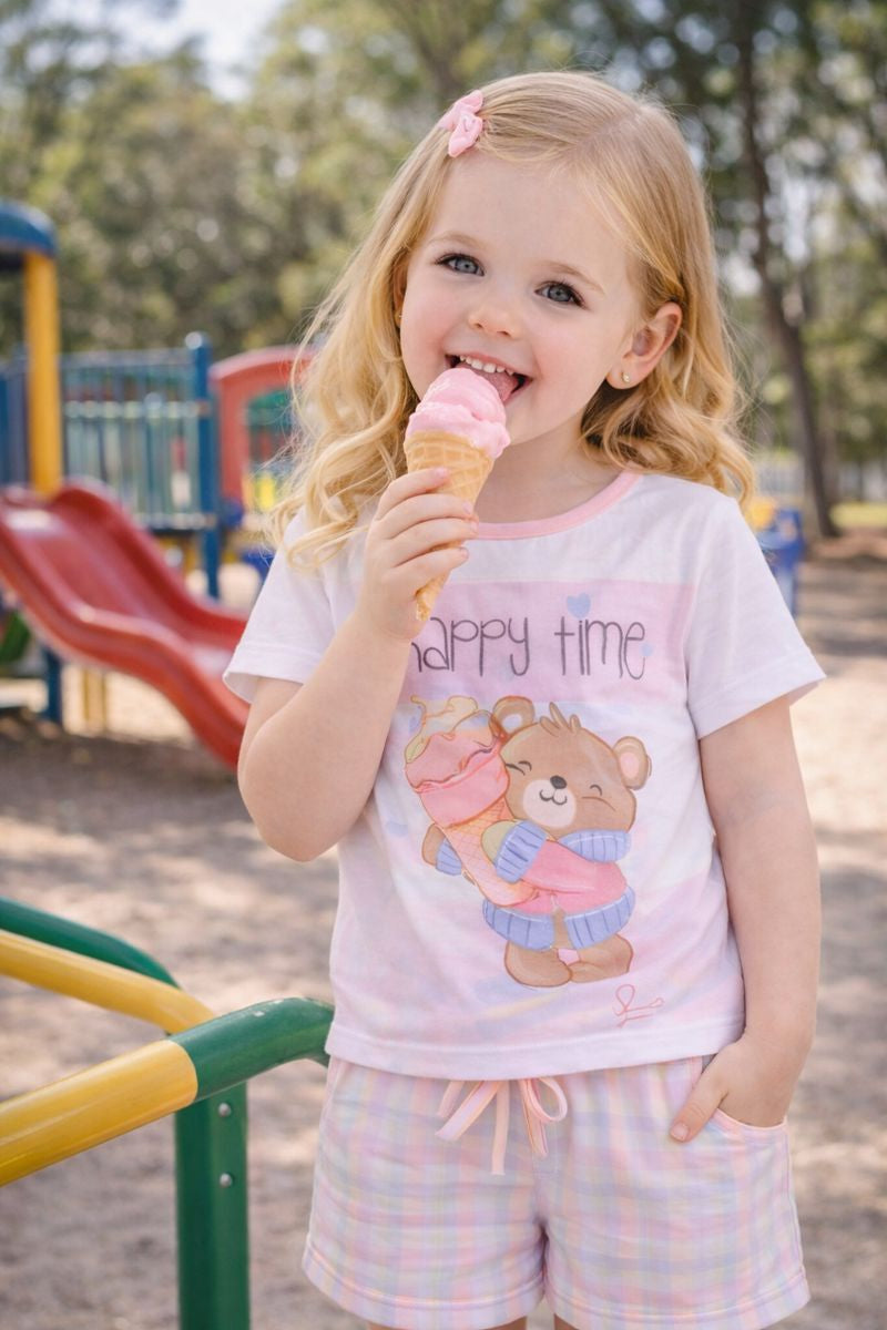 • Estampa lúdica e encantadora da Ursinha Lumi – Sorvete Delicioso