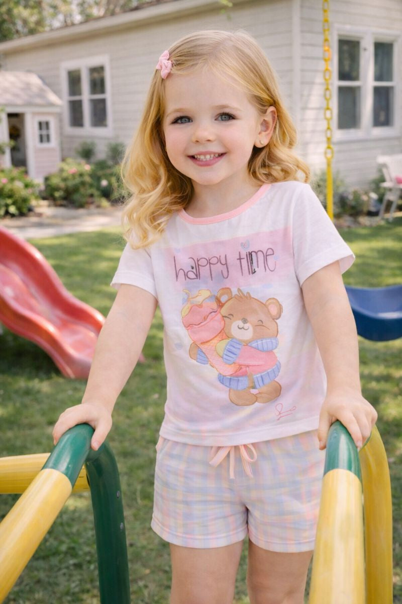 Confeccionado em tecido macio, leve e confortável, o Pijama Infantil Menina Ursinha Lumi – Sorvete Delicioso envolve a criança com suavidade, proporcionando bem-estar e liberdade de movimentos para brincar, relaxar e dormir com conforto absoluto. A modelagem foi pensada especialmente para acompanhar a rotina infantil com praticidade e carinho.